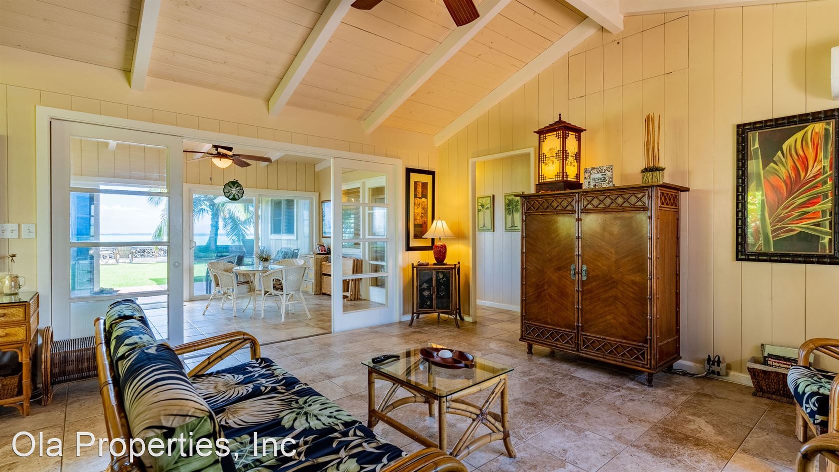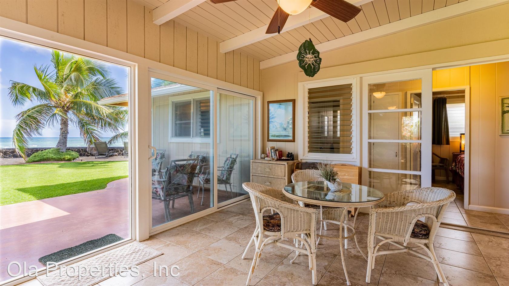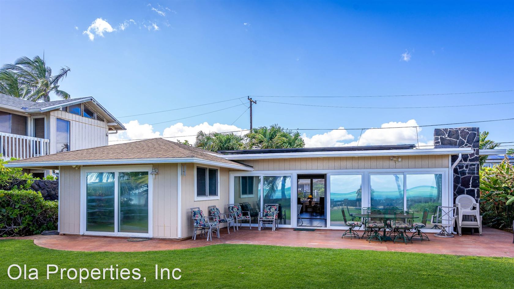 Furnished Beach Front Oasis - This Beautiful Beach Front Hawaiian home, built in 1957, was remodeled in 2008 in such way as to maintain the it's architectural uniqueness and features: Gated property, 3 bedrooms, 1.5 bathrooms (the 1/2-bathroom is exterior, accessed by going out the kitchen door, off the carport), 1550 sqft, single level home. The home includes new AC and Solar panels with, living room, lanai, full kitchen, dining area, tile floors throughout, and comes fully furnished. $35.00 Application fee per adult Non-Smoking Property Owner to Pay ALL Utilities Pet may be negotiable with owner approval and pet deposit Bi-Monthly Yard Service Included