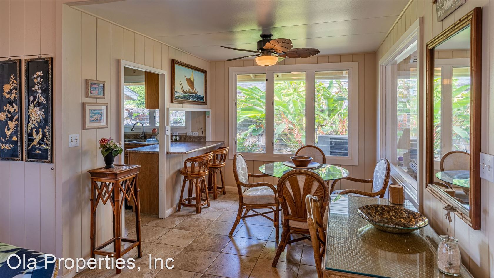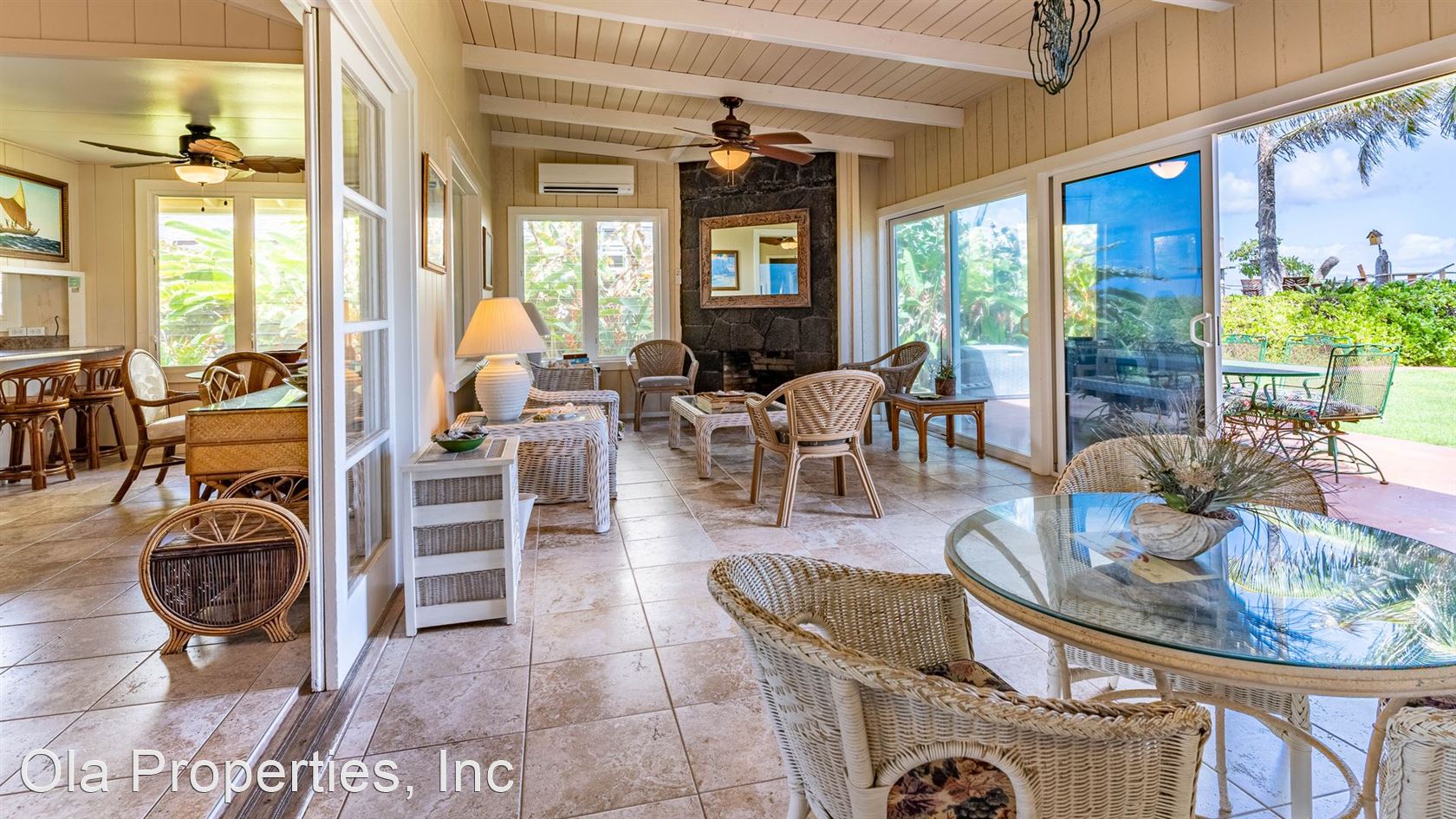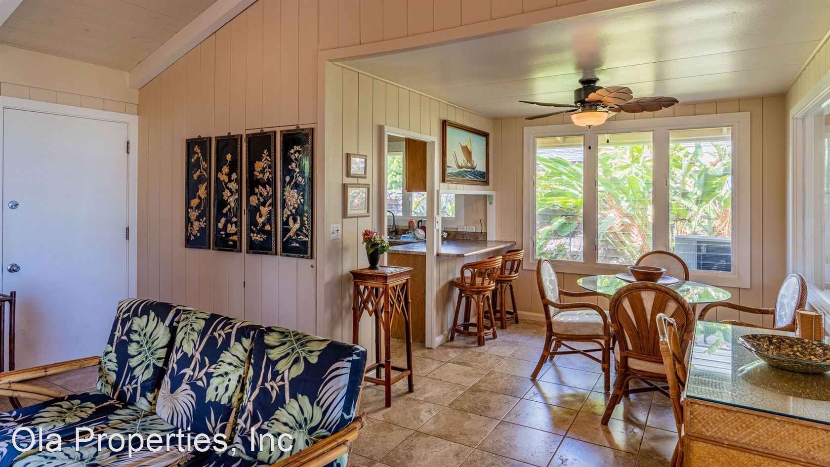 Furnished Beach Front Oasis - This Beautiful Beach Front Hawaiian home, built in 1957, was remodeled in 2008 in such way as to maintain the it's architectural uniqueness and features: Gated property, 3 bedrooms, 1.5 bathrooms (the 1/2-bathroom is exterior, accessed by going out the kitchen door, off the carport), 1550 sqft, single level home. The home includes new AC and Solar panels with, living room, lanai, full kitchen, dining area, tile floors throughout, and comes fully furnished. $35.00 Application fee per adult Non-Smoking Property Owner to Pay ALL Utilities Pet may be negotiable with owner approval and pet deposit Bi-Monthly Yard Service Included